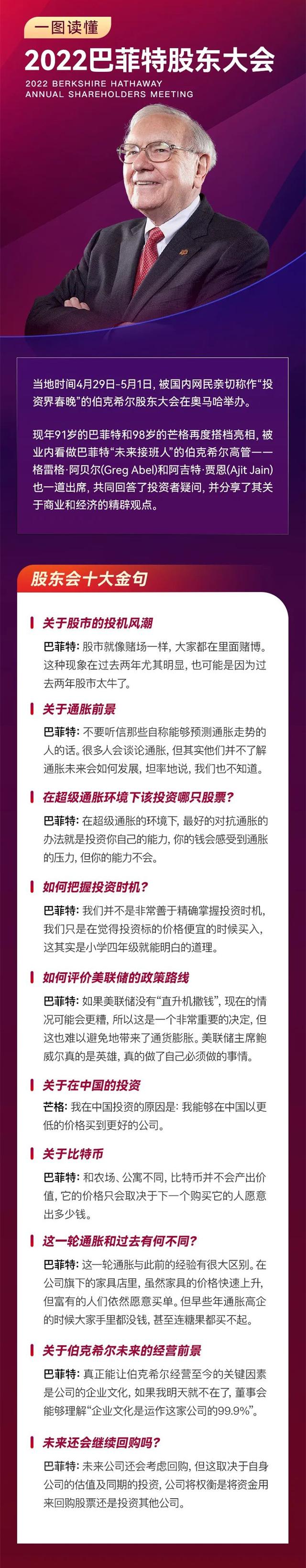 股市变赌场!最好的投资就是投资自己!怼华尔街、抨击比特币.....巴菲特和芒格两位传奇投资人在大会上金句迭出,向全球投资者传递了哪些投资智慧?