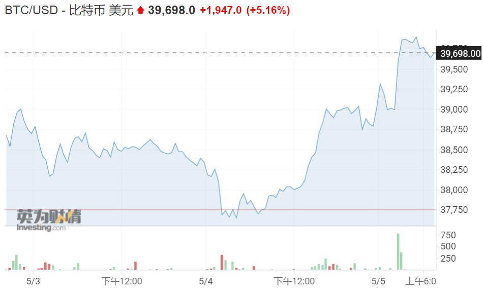美联储加息75个基点担忧消退比特币一度升破4万美元