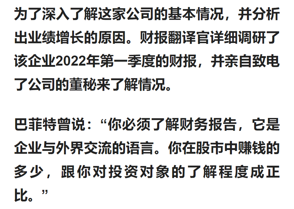 (文章的最后翻译官会告诉大家该企业的名称和股票的代码,请先客观中正地了解完公司的基本情况,再去揭晓最终的答案)