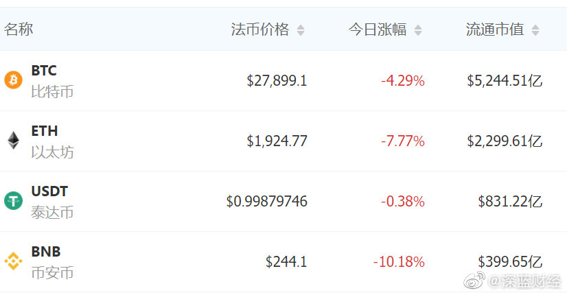 摘要:比特币一度跌超6%,跌破27000美元/枚。以太坊跌破1800美元/枚,日内跌13.29%,续刷去年7月以来新低。币圈不太平...