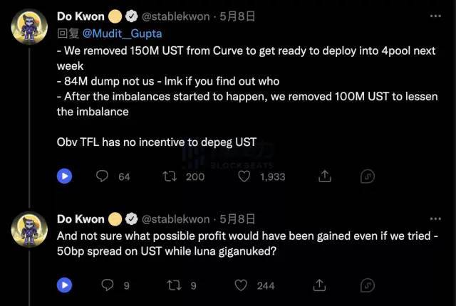 但是Do Kwon却在这一点上和LFG产生了分歧,他认为当时UST仍稳定在0.95美元之上并不算脱钩,所以还无需动用比特币。