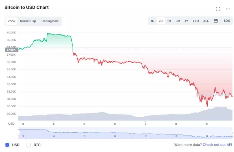 LFG 卖出 BTC,“索罗斯”卖出 UST,最终导致链变得拥挤,CEX 将 UST 的提款暂停。加密社区感到恐慌,因为他们想知道要卖出多少 BTC 才能保持挂钩,BTC 从 4 月 11 日的 4.2 万美元下跌 25% 至 3.13 万美元。终于,BTC 下跌加速,UST 彻底脱锚,空军大获全胜。