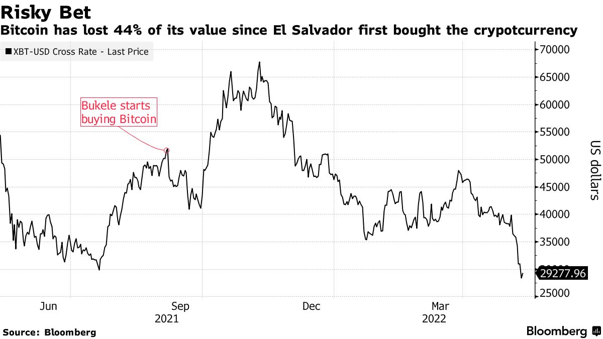 一跌再跌的比特币也让萨尔瓦多总统布克利备受打击。他是一位虔诚的加密货币信徒,五个多月以来一直试图出售比特币支持的债券。但投资者对萨尔瓦多的债券感到厌恶,不仅担心政府保持债务流动的能力,也担心政府其实没有意愿这样做。布克利的办公室拒绝了外媒的置评请求,政府也不公布其持有的比特币数据。