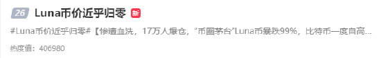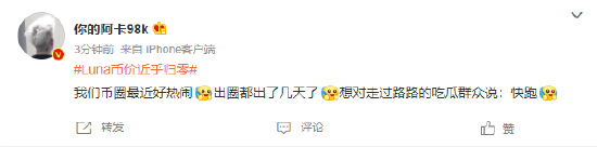 #Luna币价近乎归零#连续三天跌上微博热搜!网友评论:币圈好热闹,想对吃瓜群众说快跑!