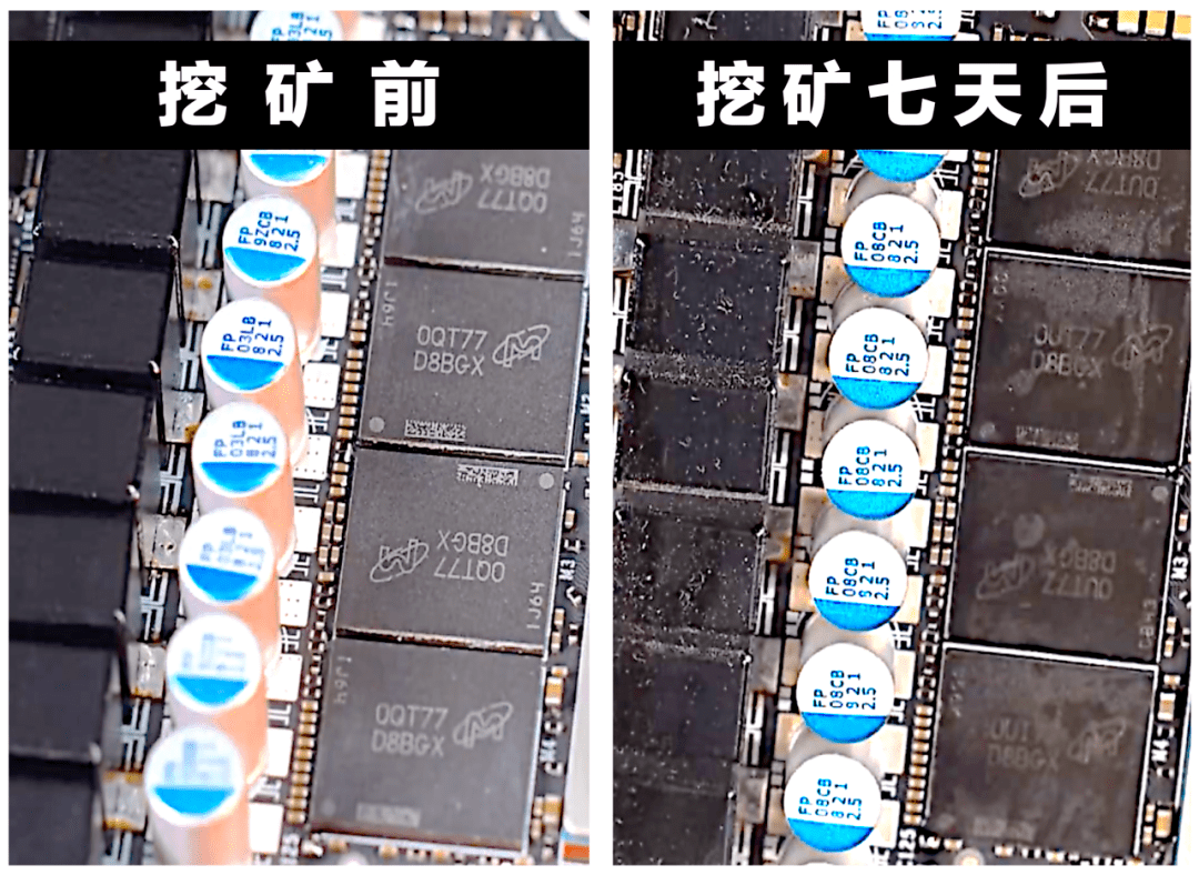 现在之所以出现这么严重的“渗油”,也只能怪“挖矿”运算太过繁重,动不动就让显存上到100℃的高温状态!再加上显卡一挖起矿来都是24小时连轴转,这就相当于把实验室的高温加速老化箱搬到了自己家里啊!