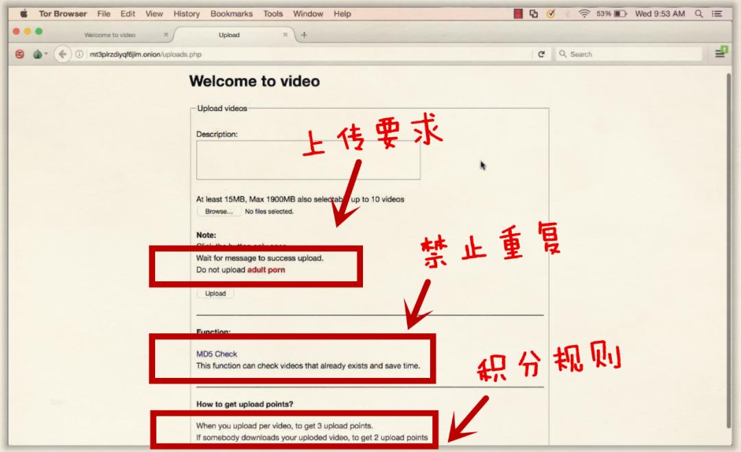 当时,这个比特币收款地址已经累计收了价值30万美元的比特币,而翻遍了网站,甘巴彦也没找到“退款”之类的按钮——也就是说,“会员”充进来的比特币,根本没有退回去的可能性。在上传页面上,管理员特别强调了两点原则:1、不可以上传成人视频;2、不可以上传重复的视频。
