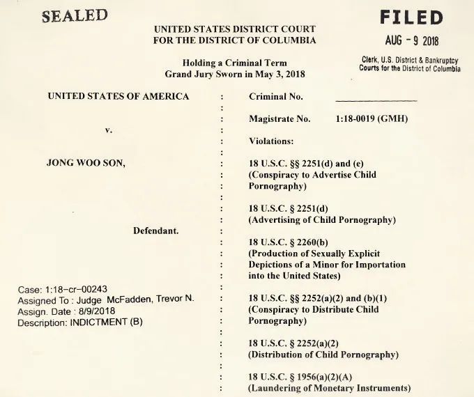 美国最初一份对孙正宇的起诉书。引渡谈判的消息一传出,韩国网友清一色倒向美国司法部。他们甚至递交了一份支持引渡的网络签名书,很快,就有30万人签字。2020年4月20日,也就是孙正宇预计释放日期的前一周,法庭突然重新签署逮捕令,延长关押时间,等待韩国法院引渡听证的举行。听证会在2020年5月19日举行,而法院将在听证会后两个月内给出最终裁决。