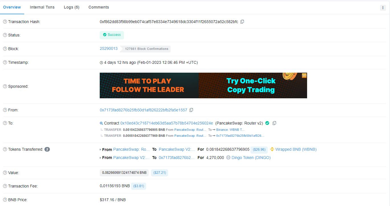 Dingo 加密代币被标记为超过 99% 交易费后门的骗局