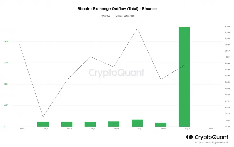 过去 7 天 Binance 上的比特币流出量。资料来源:CryptoQuant。