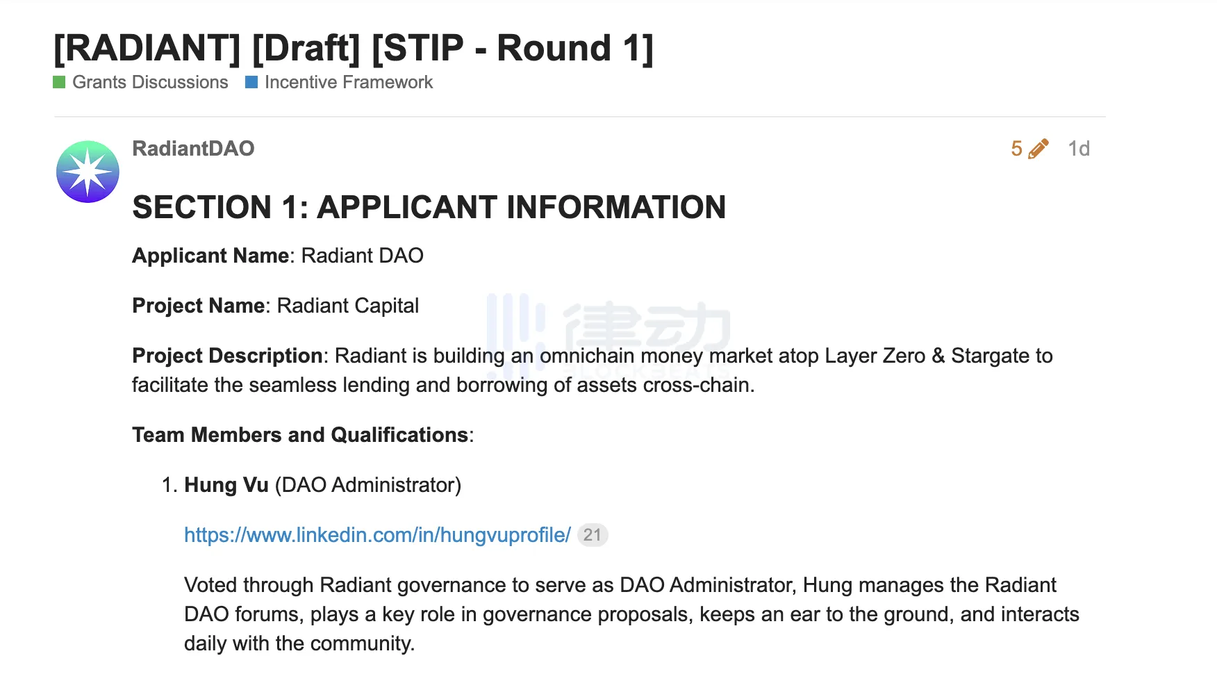 9 月 26 日,跨链借贷协议 Radiant Capital 向 Arbitrum DAO 提交一项战略提案,旨在进一步推动生态系统的增长。Radiant 申请一笔介于 52,126 至 3,359,302 ARB 的资金,以扩大其在粘性流动性、生态系统丰富化及未来整合三个核心领域的影响力。