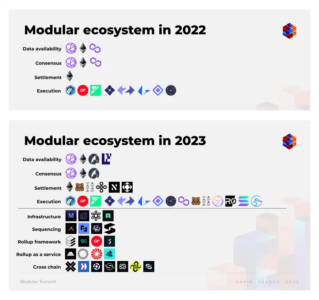 自去年在阿姆斯特丹举行第一届模块化峰会以来,模块化生态系统已显着发展。新颖的执行层和专用区块链的实验正在兴起,伴随着令人兴奋的新的补充基础设施,如意图系统和零知识状态证明。