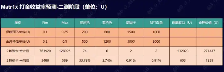 5.1.1 其中 FIRE 代币按照场外成交价格 0.1 来进行预估的,根据 Matr1x 的@poemran(Founder&CEO) 在 AMA 描述,公测前 FIRE 发放只有 6000 万代币,并且只解锁 10%,也就是有 600 万代币,按照 0.1 只有 60 万 U,中间 FIRE 代币开宝箱和升级角色,还会通缩,目前肯定是低估