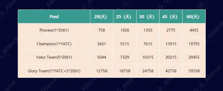 3.2.1 这又给了 NFT 一个巨大的赋能,特别是 YATC,根据官方测算的质押奖励表,持有 1 个 YATC,质押 60 天,就能获得近 2 万 FIRE 代币,按照场外悲观价格 0.1U 计算,2 个月质押奖励能带来 2000U 的额外收益