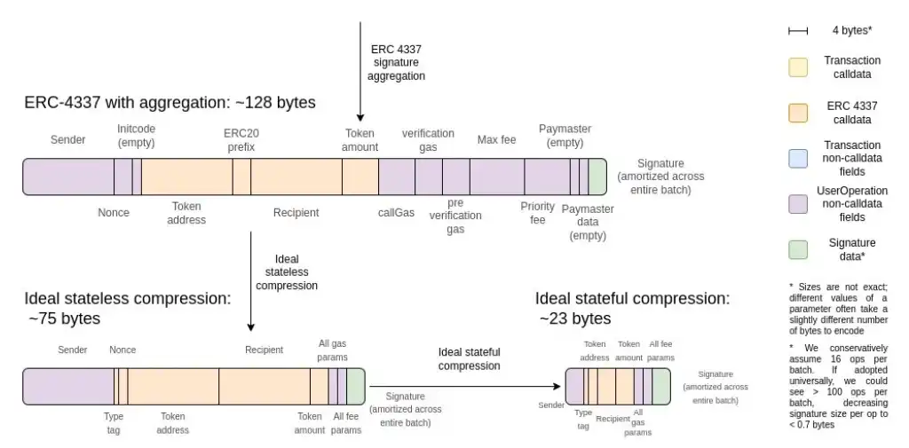 值得一提的是,在目前的形式下,ERC-4337 比「基本」以太坊交易要贵得多:交易成本为 21, 000 gas,而 ERC-4337 的成本约为 42, 000 gas。