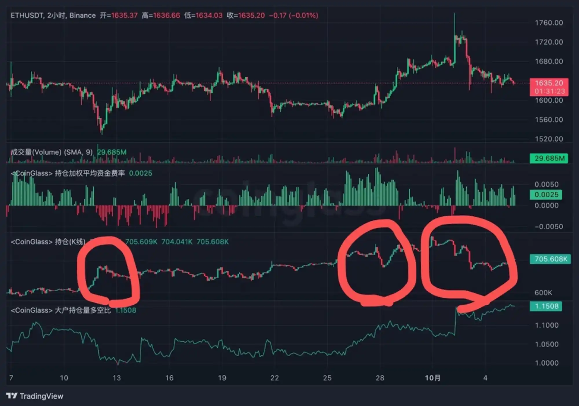 我们在 9 月中旬进行了一些建仓行为,主要买入了大约 20% 仓位的 ETH,成交均价在 1600 美元左右,因为我们一直观察的建仓信号在情绪面和筹码层面出现了一些边际上的改变。