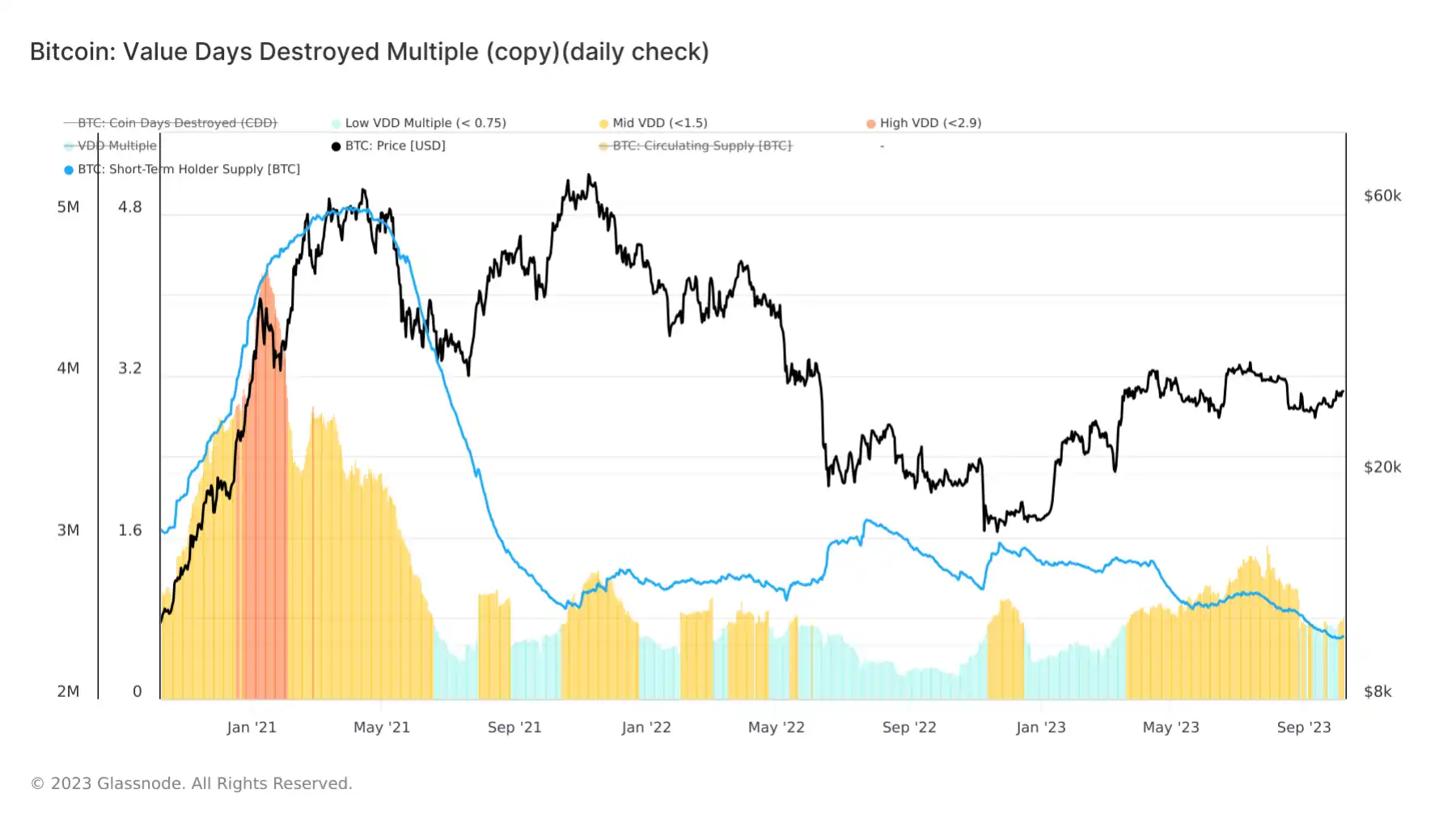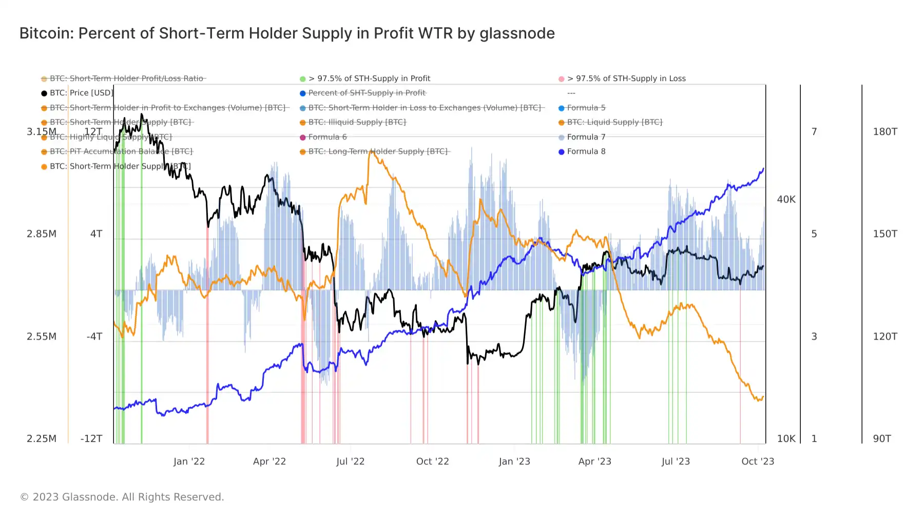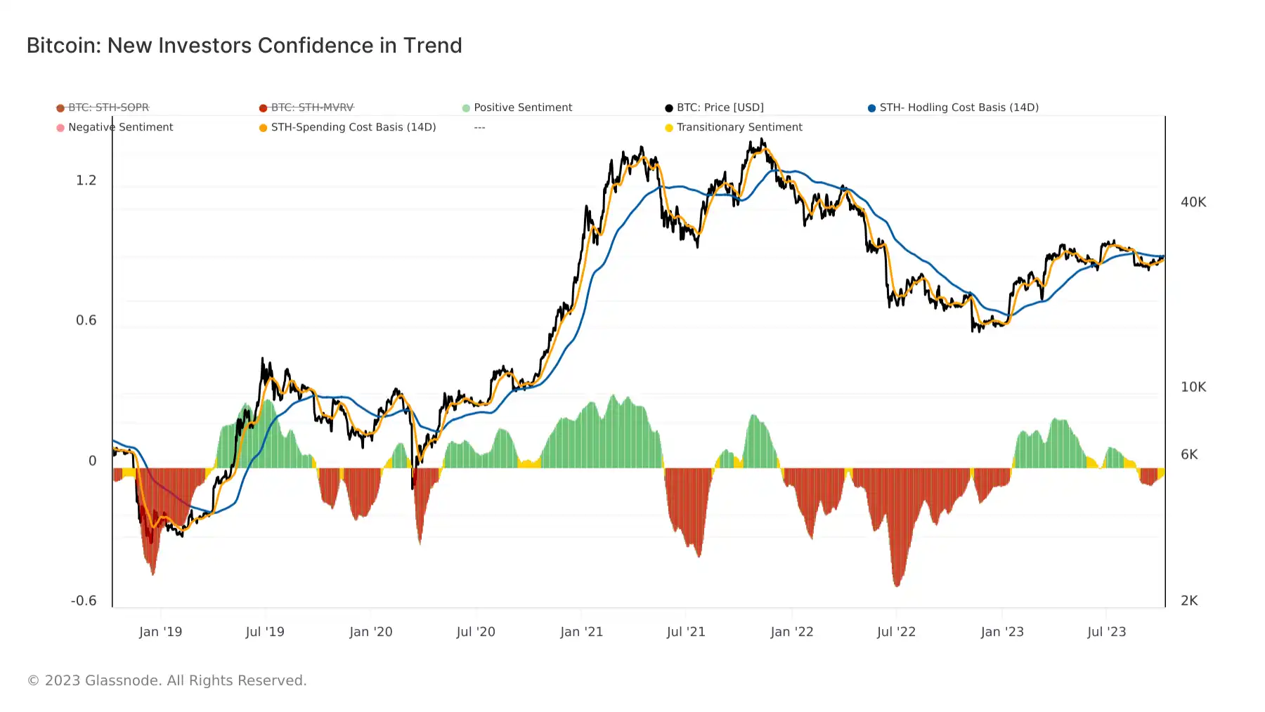 价格的拉升使得积极情绪有所上升,同时恐慌情绪仍处于低位。 当前价格已来到短期持有者成本区间。本周仍关注以亏损转移量为代表的市场恐慌情绪。