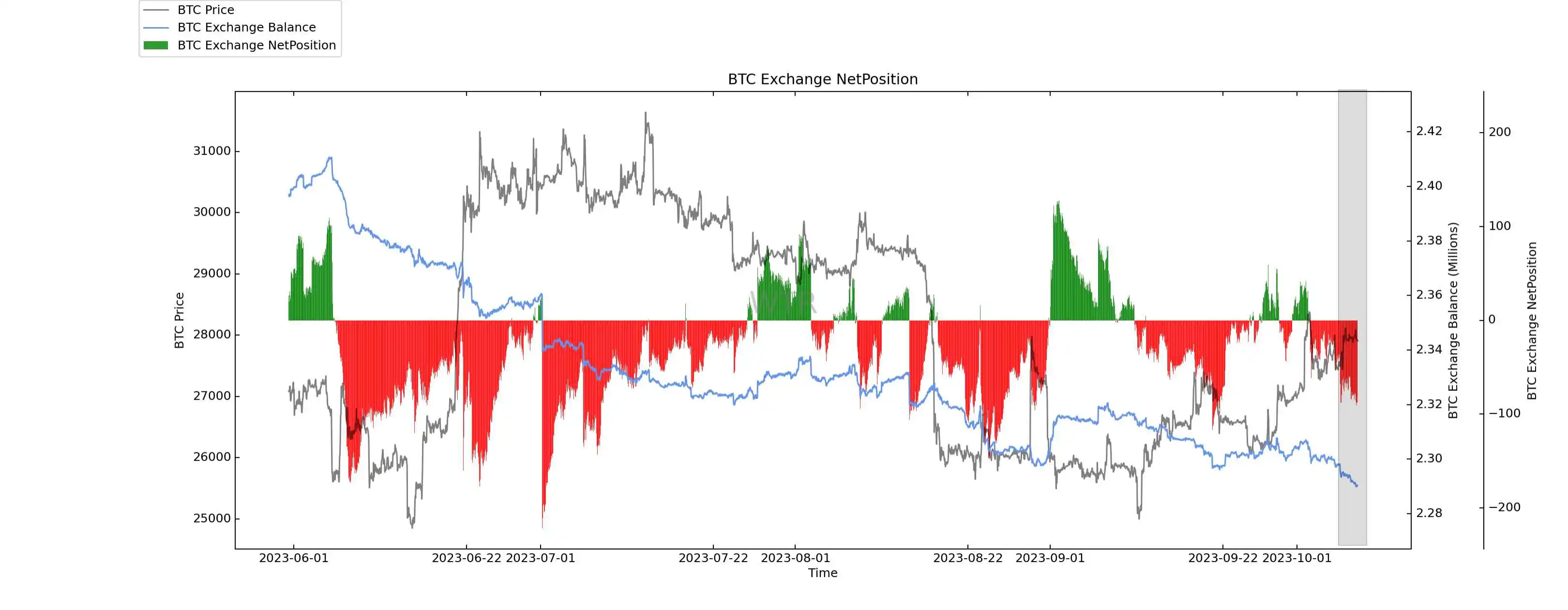 4. 交易所净头⼨整体呈现流出累积状态,抛压较低。