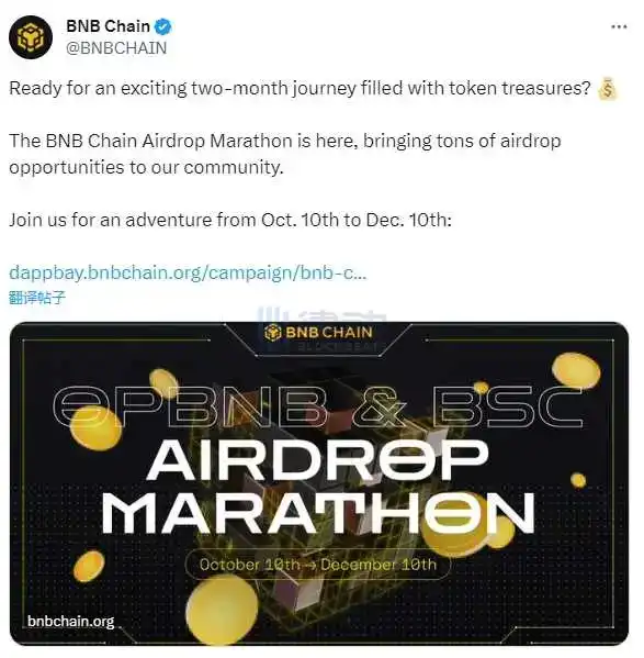 BNB Chain 推出为期两个月的空投马拉松活动,旨在提升生态活跃度