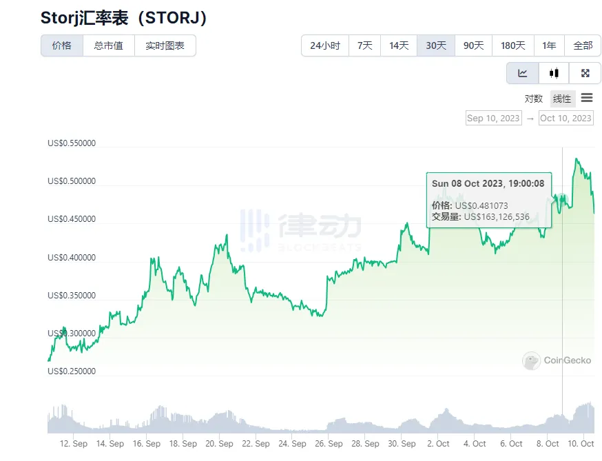 STORJ 价格近一个月涨幅超 100%,团队大量存币