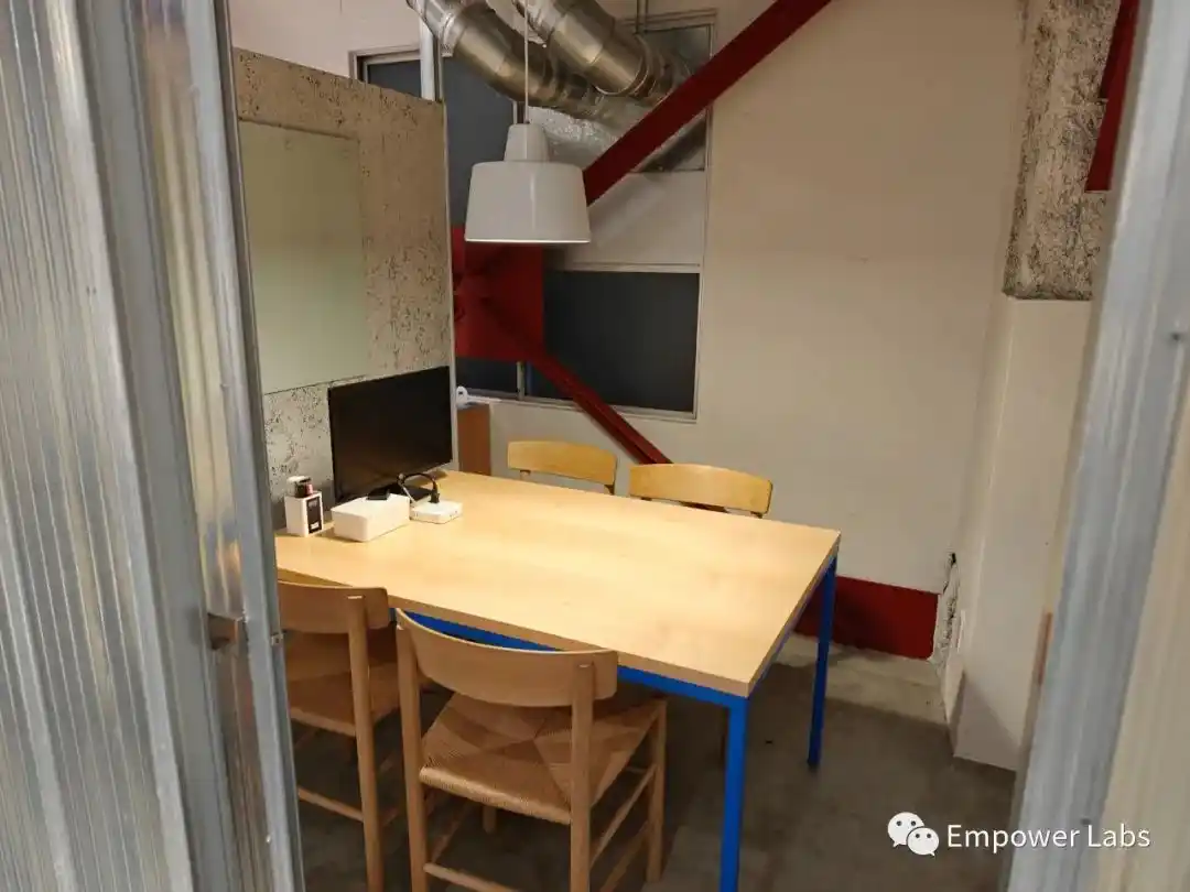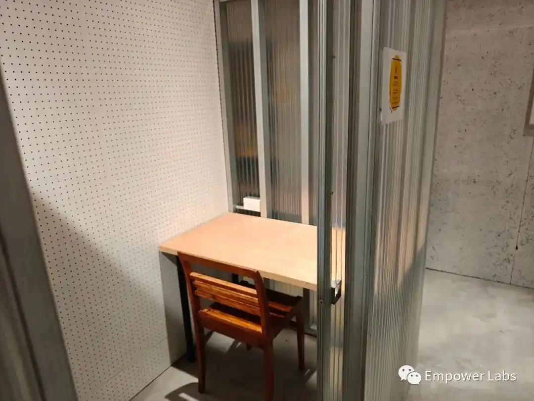 我和运营负责人提前约好了 5 点碰面,大概也是有点晚了,办公室里人不多,大家安静的在做自己的事。现场负责接待我的是一个小姑娘,形象清秀可人,英文说的也还行。她带着我转了两层,介绍了各种设施和对租客的支持。一圈转下来的感觉是硬件虽然简陋,但自在舒适。不过无论是隔间还是会议室,隔音约等于 0,只要打电话和开会,那就是正经的 build in pubic,倒也是挺符合 DAO 精神,欢迎你来听。