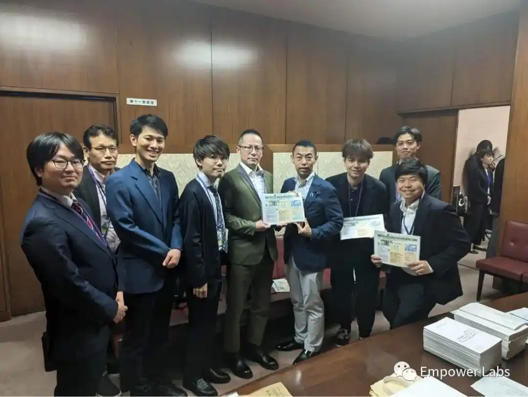 5 月 19 日,他们又向今枝宗一郎議員提交了提案。今枝宗一郎是执政党自民党青年部部长、创业促进委员会常务理事,一位 Web3 友好的政客,又刚在 9 月 17 号的内阁改组中被任命为文部科学副大臣 (相当于文化科技部副部长)。