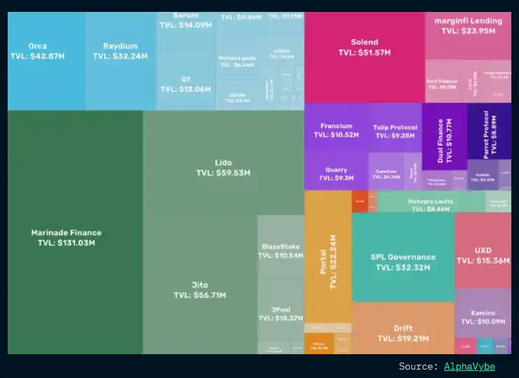 · 流动性质押领域正在迅速发展,Marinade Finance、Lido 和 Jito 处于领先地位。只有 3-4% 的质押 SOL 锁定在 Solana 的流动性质押协议中,而且增长机会巨大。