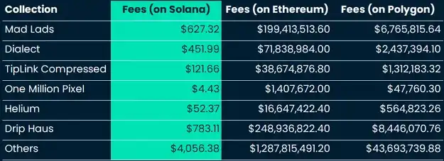 如果没有状态压缩升级,在 Polygon 上铸造集合实际上比在 Solana 上便宜得多。显然,Solana 在压缩技术方面获得了显著优势,这大大降低了 NFT 的铸造和交易成本。