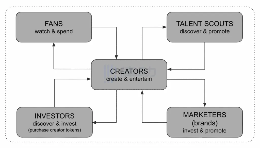 如果仍有余额,将被分发给所有创作者代币的持有者,而不仅仅是特定创作者的支持者。这种分配方式提供了一种回馈机制,使平台的各方参与者都能从平台的发展中受益,决定于他们是否支持特定创作者。这鼓励更多人参与平台,增强了平台社区的凝聚力和可持续性。