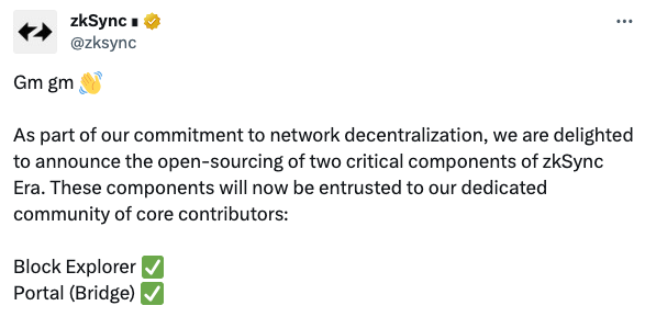 依照 ZK Credo 宣言,@zksync 最近先后完成了 Ecosystem Portal、Block Explorer 以及官方 Cross-Bridge 的去中心化,将这些核心部分开源由第三方技术方提供服务。然而百思不得其解的是,涉及重大资产 deposit 和 withdraw 通道的「官方跨链桥」,竟然交给了名不见经传的@TxFusion_io。Why?该如何解读这件事?