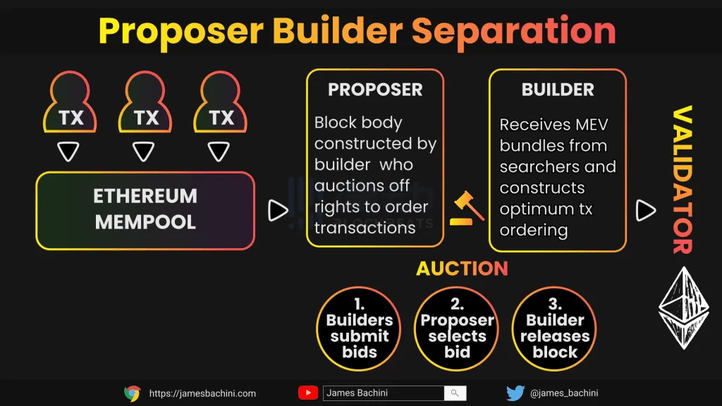 PBS,全称 Proposer-Builder Separation,即提案者-构建者分离,是区块链设计中一个重要的理念。它主要是指在链上治理中,将提案者和区块构建者的角色进行分离,提案者只负责提案,而将复杂的区块构建工作外包给专门的构建者完成。这种分工方式的初衷是为了降低参与共识的门槛,使网络更加去中心化。