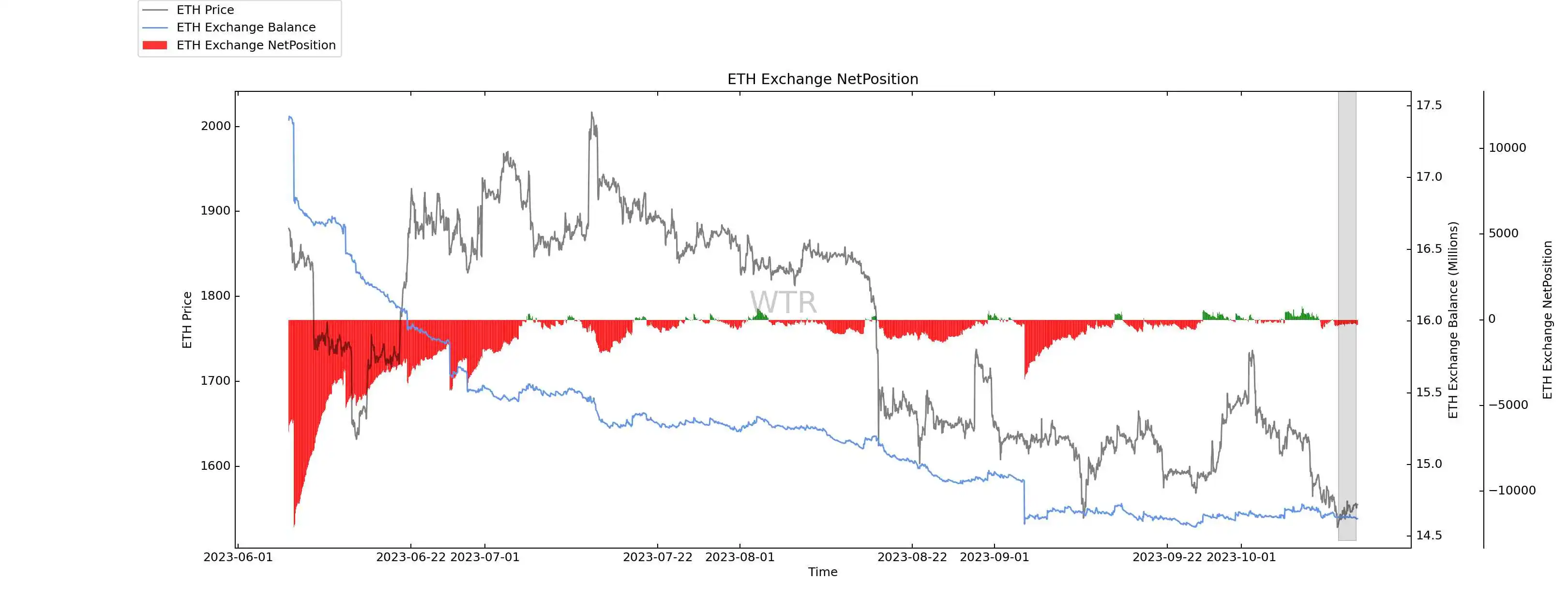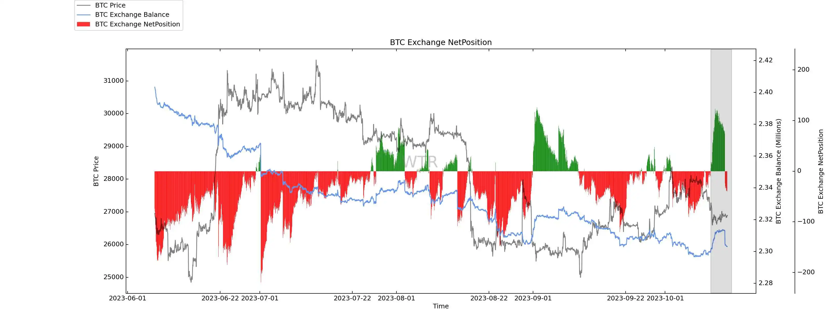 3. 交易所净头⼨整体呈现流出累积状态,抛压较低。