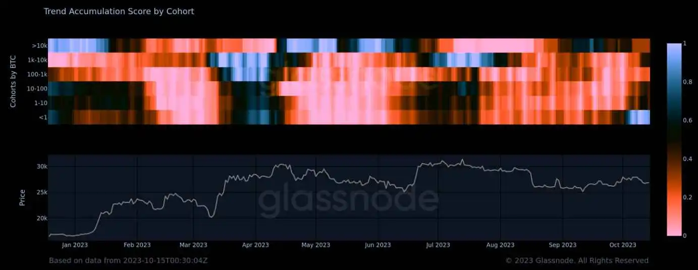 巨鲸在当前阶段产⽣了⼀些分歧,⽽整体全体最⼩的⼀类参与者,反⽽增加了增持的脚步。