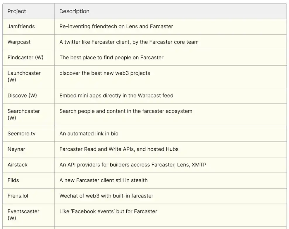 以下是 Farcaster 社区构建项目的非详尽列表。