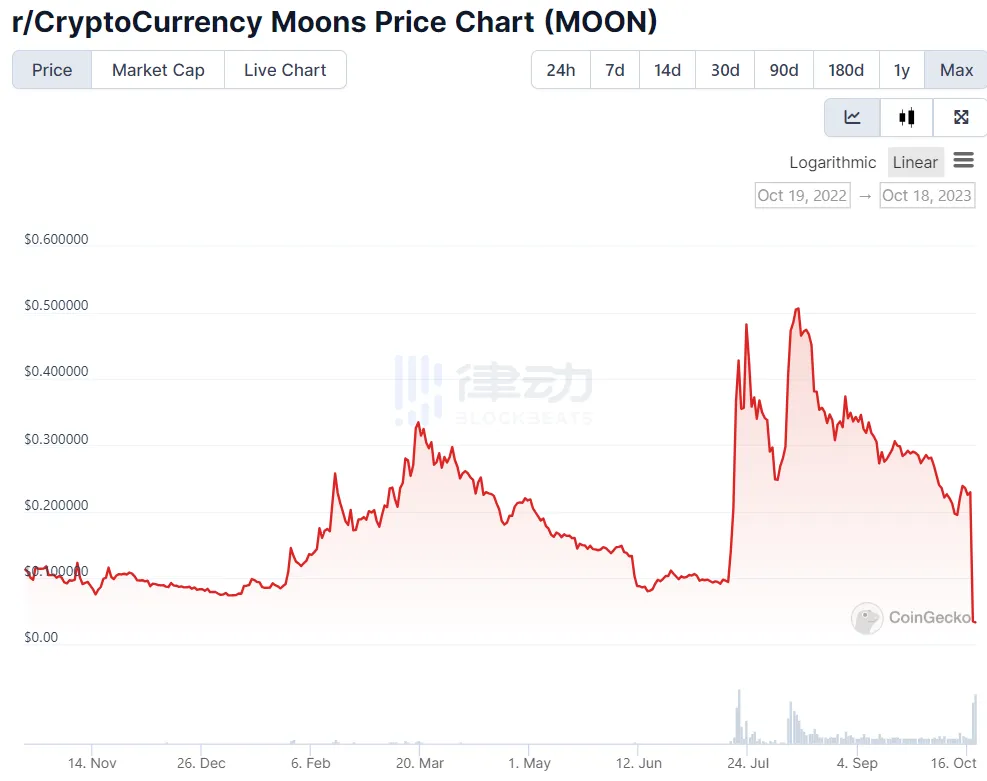 更令人震惊的是,当 Reddit 的社区代币 Moons 和 Bricks 在 Kraken 上市后,价格简直是火箭般的上涨。
