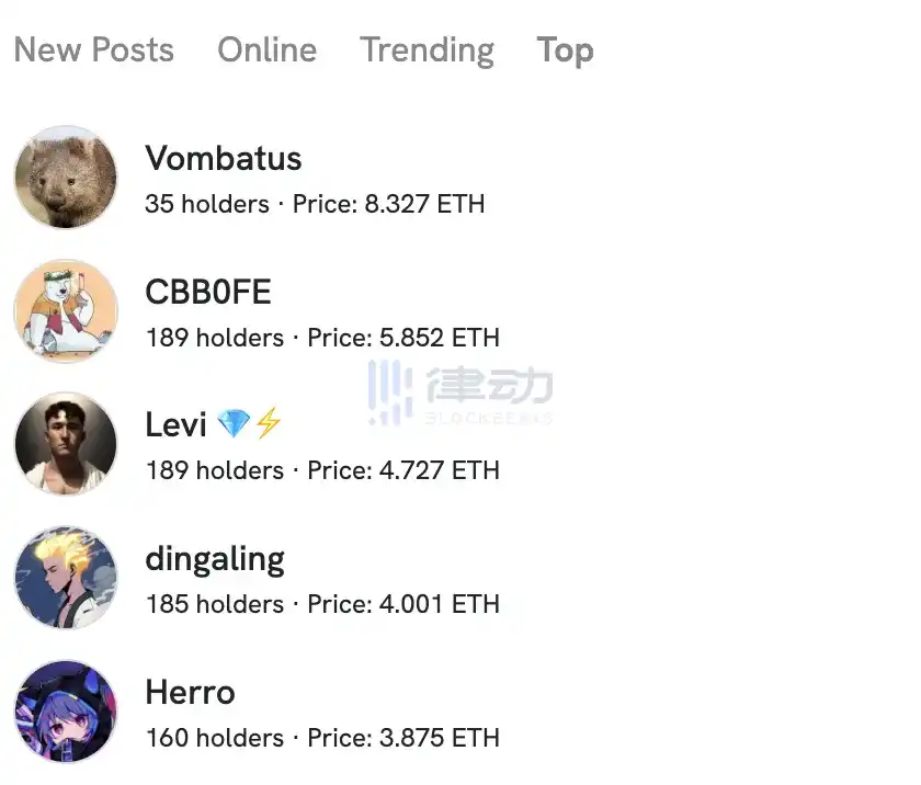 friend.tech「Keys」价格排行榜:加密 KOL Vombatus 以 8.327 ETH 位列第一