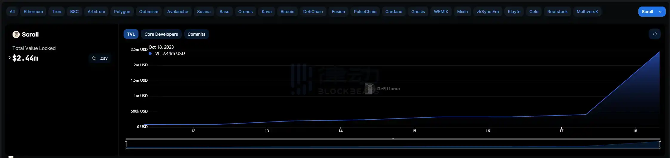 Scroll 在正式公布主网上线后 TVL 已增长超 500%