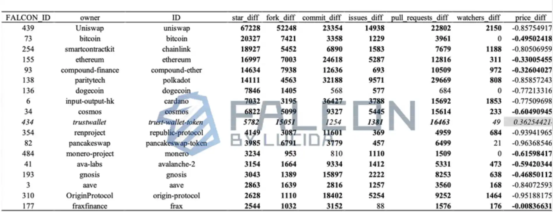 本文中所有项目的 Github 数据,在 Falcon 的产品上也可以看到,访问链接:https://falcon.lucida.fund/ch/asset_tracker/73/github?uid=