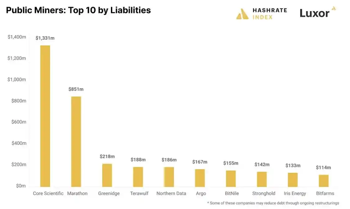 可以看到债务权益比水平在收入环境较差的情况下对企业的存续能力有决定性影响,历史 Capex 较高通常意味着债务权益比在不积极进行债务偿还的情况下也会较高。如果 Capex 的支出还未给 B/S 带来正向现金流的贡献,在这样的外部环境下,视为消极的信号。Core Scientific 作为债务权益比排名第一的矿企,已经在 2022 年底宣布破产,目前正在进行破产重组。