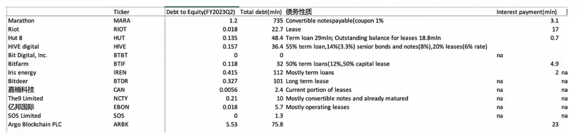 Riot 债务权益比= 22mln/1240mln=0.017(2023Q2), 远低于 Marathon 的 1.23(计算未在最新财报中体现的已偿还可转债 Marathon 债务权益比为 0.54)