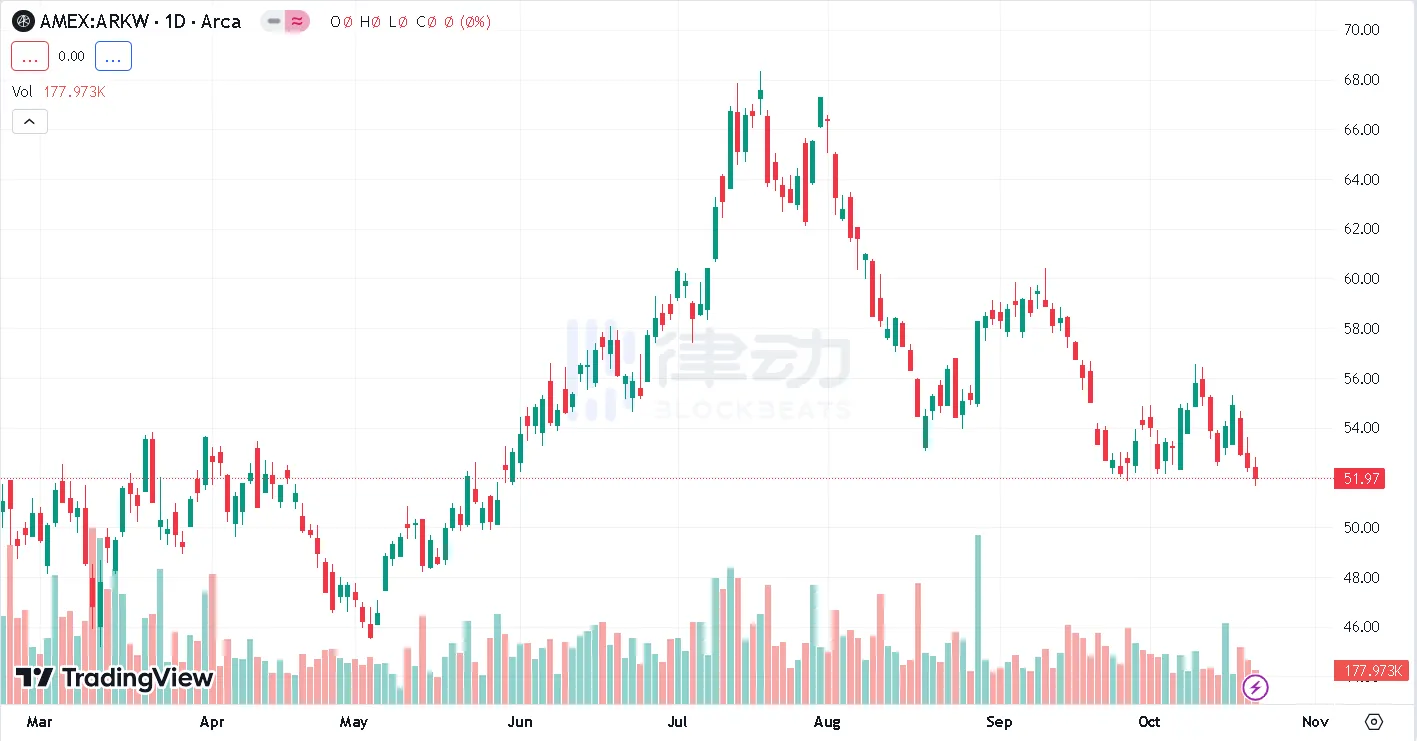 据 Tradingview 数据显示,自八月来,ARK 方舟基金呈持续的下跌状态,但木头姐却似乎另有想法,开始筹备自己的比特币 ETF。