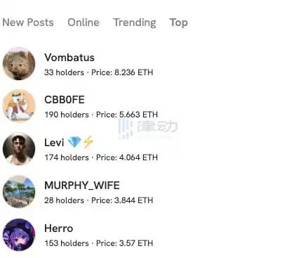 friend.tech「Keys」价格排行榜:加密 KOL Vombatus 以 8.236 ETH 位列第一