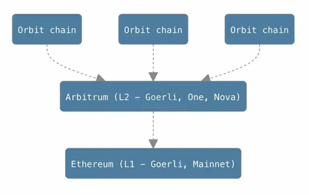 Orbit 计划是 Arbitrum 基金会于 3 月份成立时发布的首批公告之一,其用于在 Arbitrum 主网之上创建和部署 L3 的开发框架,这些 L3 上的交易将通过 Arbitrum 的 L2(例如 Arbitrum One 或 Nova)进行结算。