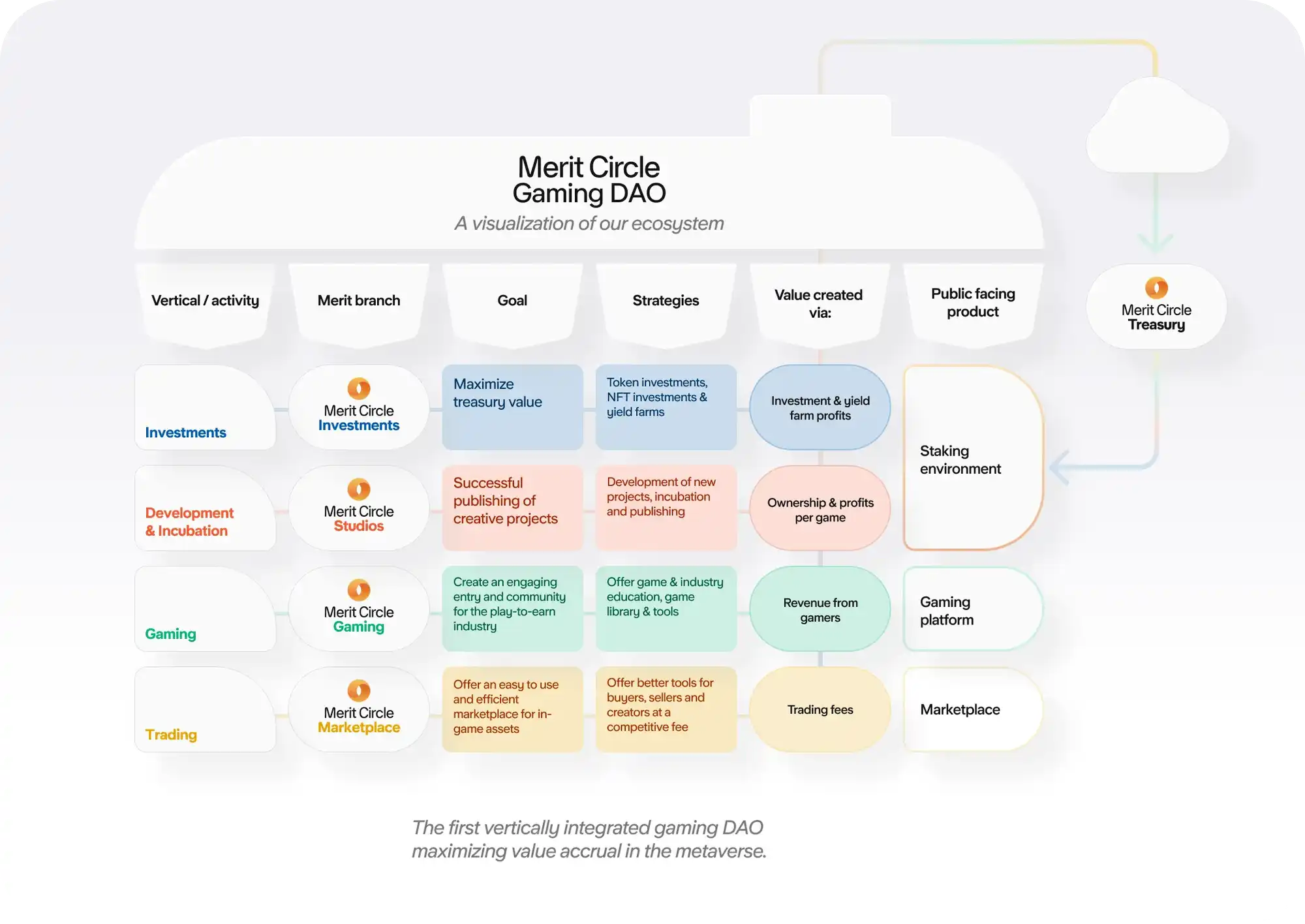 Merit Circle 目前的业务主线主要包括四个部分:Investments/Gaming/Studios/Infrastructure,从孵化、投资到基础设施涵盖游戏产业链的多个环节,且宣布已经完全关闭了奖学金项目,表现其从游戏公会向游戏平台转变的战略决心。