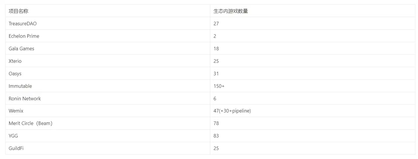 目前,各项目生态内游戏的数量如上表所示,具体分析如下。