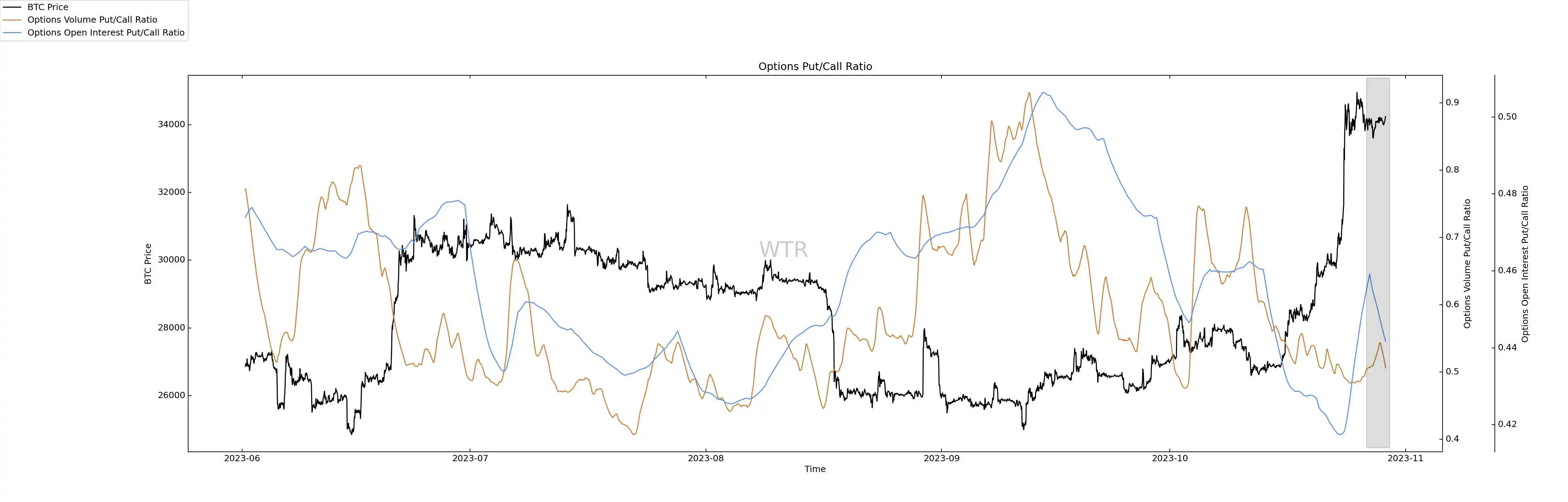 期权成交量对⽐上周持平,看空期权⽐例处于中位⽔平。