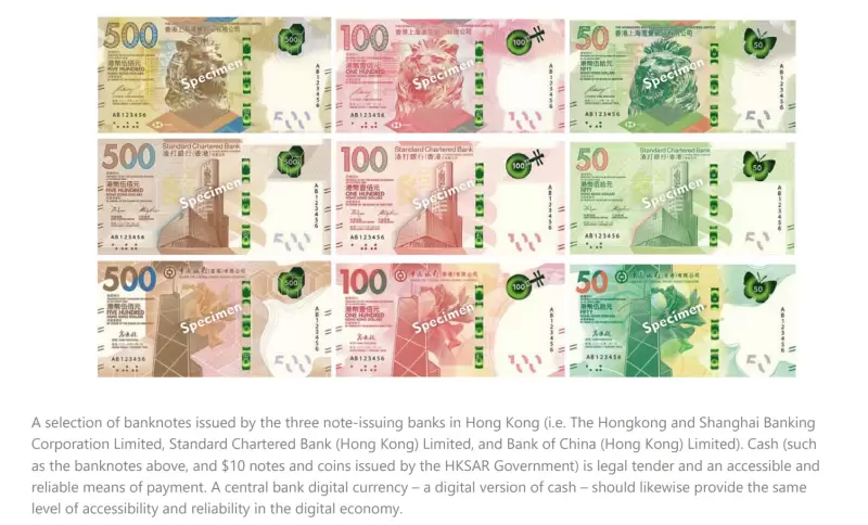 三个发钞银行发行的电子港元样本。资料来源:hkma.gov.hk