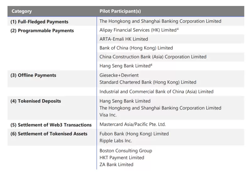 按类别和参与者划分的试点摘要。资料来源:hkma.gov.hk