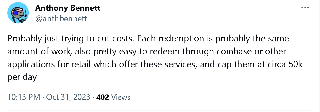 这引发了社区关注度,不少人推测这可能是由于耗尽储备或作为成本削减、重组活动的一部分。Circle 官方表示其在 2021 年 9 月停用了客户应用程序,现在正在淘汰这些旧的个人消费者账户。但 Circle 将个人账户称为「传统消费者账户」,表明它们不再被频繁使用。