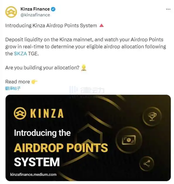 DeFi 借贷协议 Kinza Finance 推出空投积分系统
