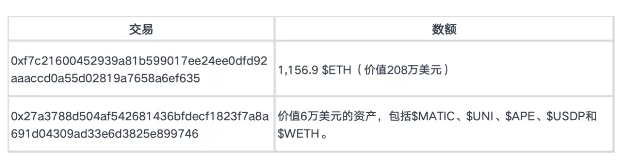 截稿时,攻击者(0x085bDf)已使用另一个受控地址(0x4c9c86)将 1140 个$ETH 转移到混币平台 Tornado.Cash